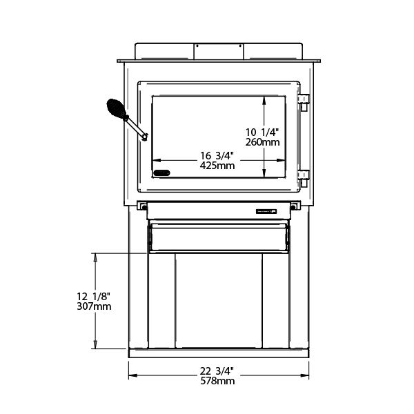 Inclus : piédestal avec rangement à bûches, déflecteur d'air arrière, tablette à cendres, tiroir à cendres, contrôle d’air